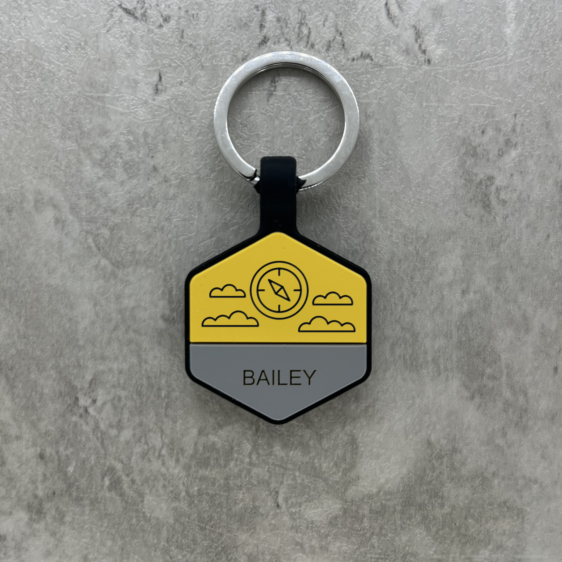 Crafted from silicone, these tags withstand everyday adventures while remaining lightweight. You can fully customize the engraved text, making each tag unique and personal.